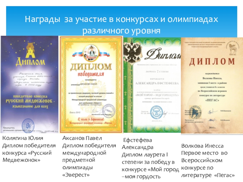 Волкова Инесса Первое место во Всероссийском конкурсе по литературе «Пегас»