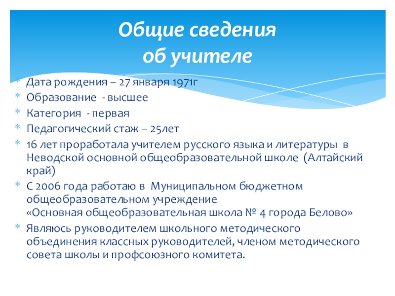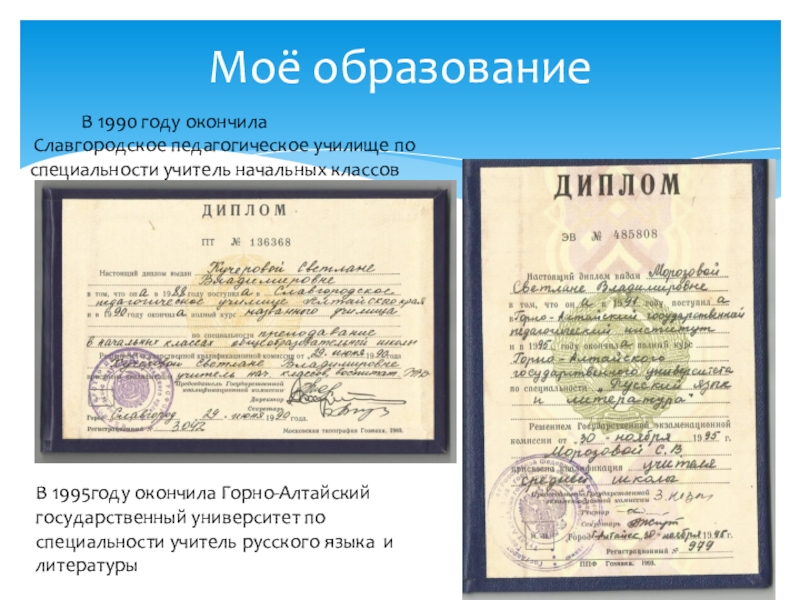 В 1995году окончила Горно-Алтайский государственный университет по специальности учитель русского языка и литературы