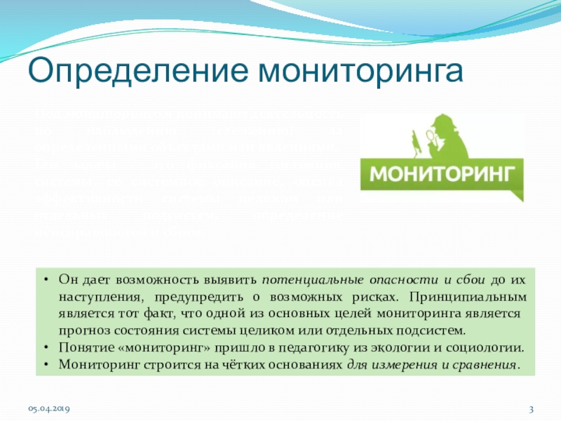 Понятие «мониторинг» пришло в педагогику из экологии и социологии.