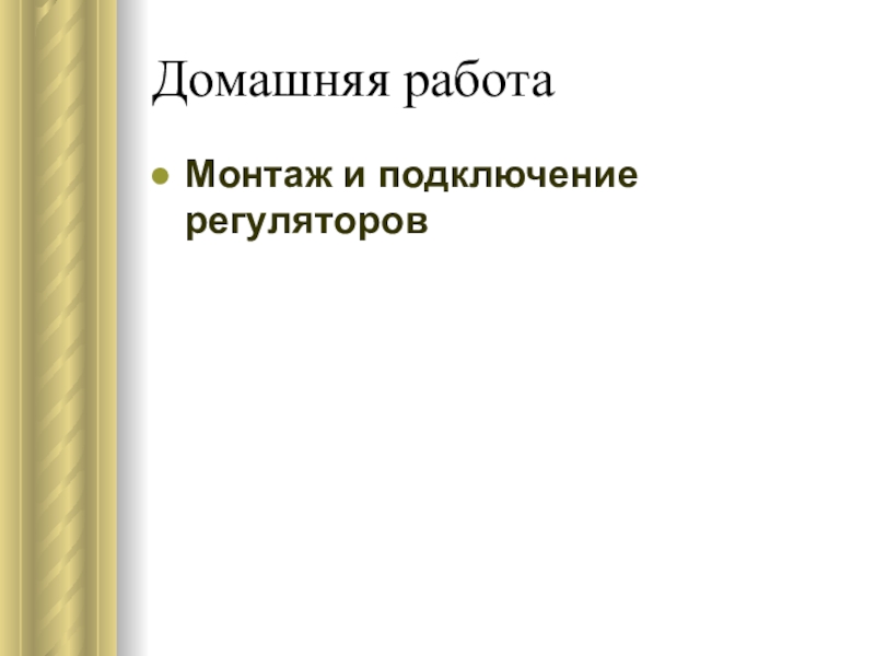 Слайд 1Монтаж отборных устройств, исполнительных и регулирующих устройств, приборов управления на щитах