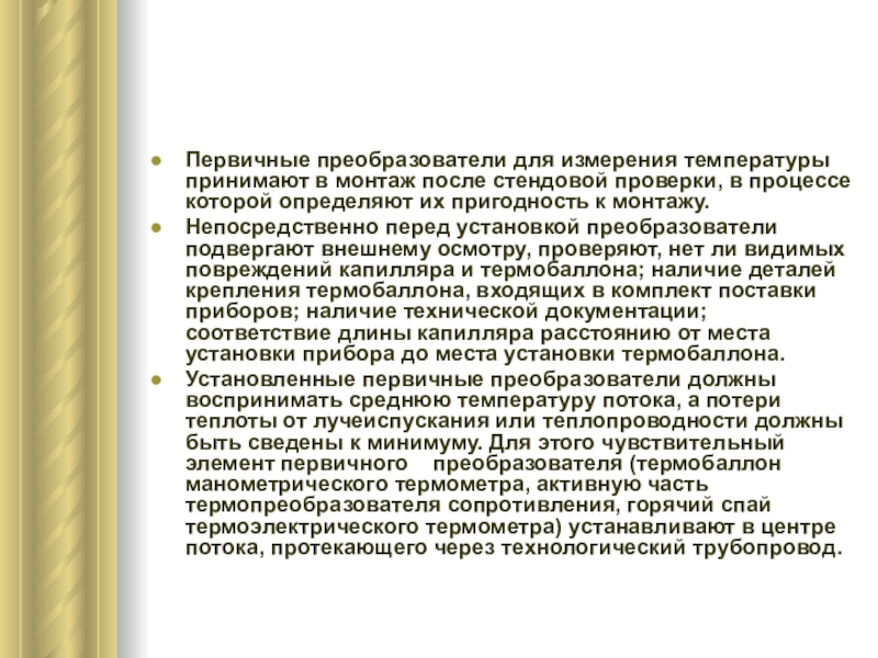 Первичные преобразователи для измерения температуры принимают в монтаж после стендовой проверки,