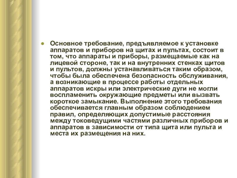 Основное требование, предъявляемое к установке аппаратов и приборов на щитах и