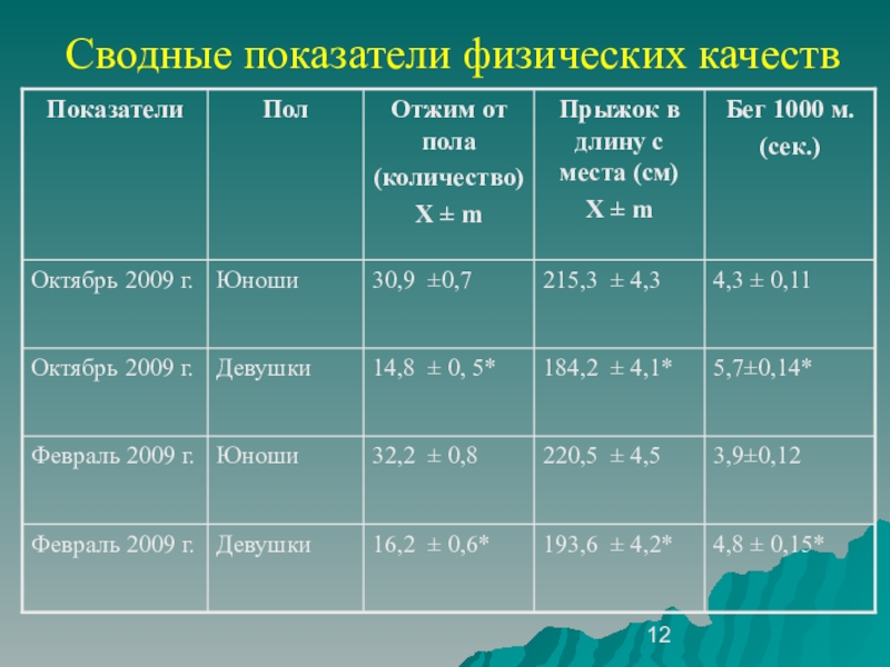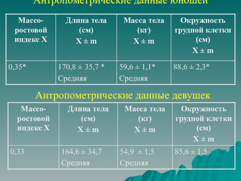 Показатели антропометрии