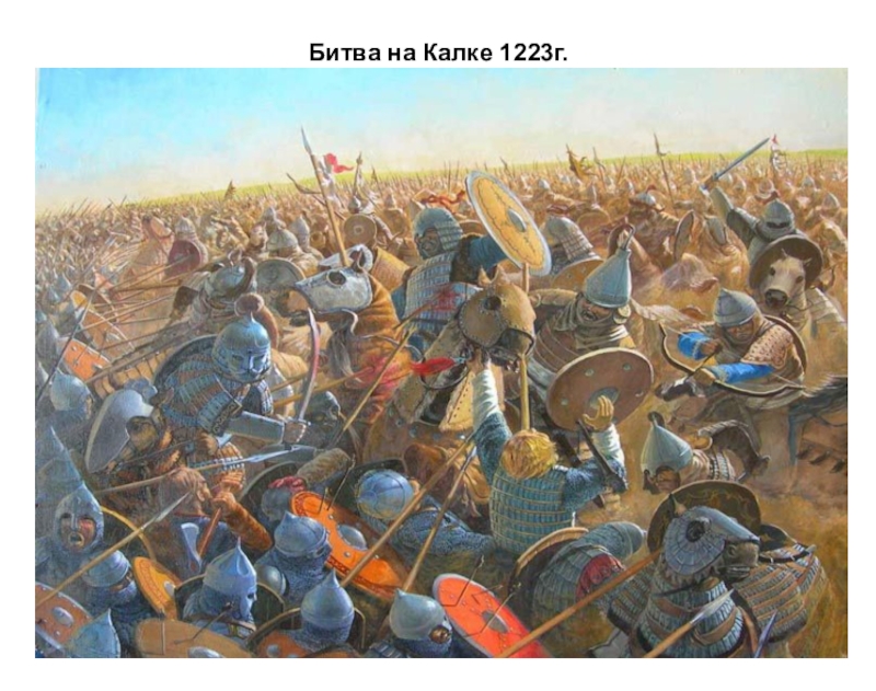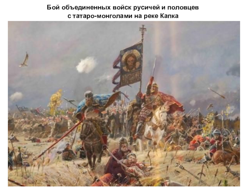 Слайд 8Бой объединенных войск русичей и половцев с татаро-монголами на реке Капка