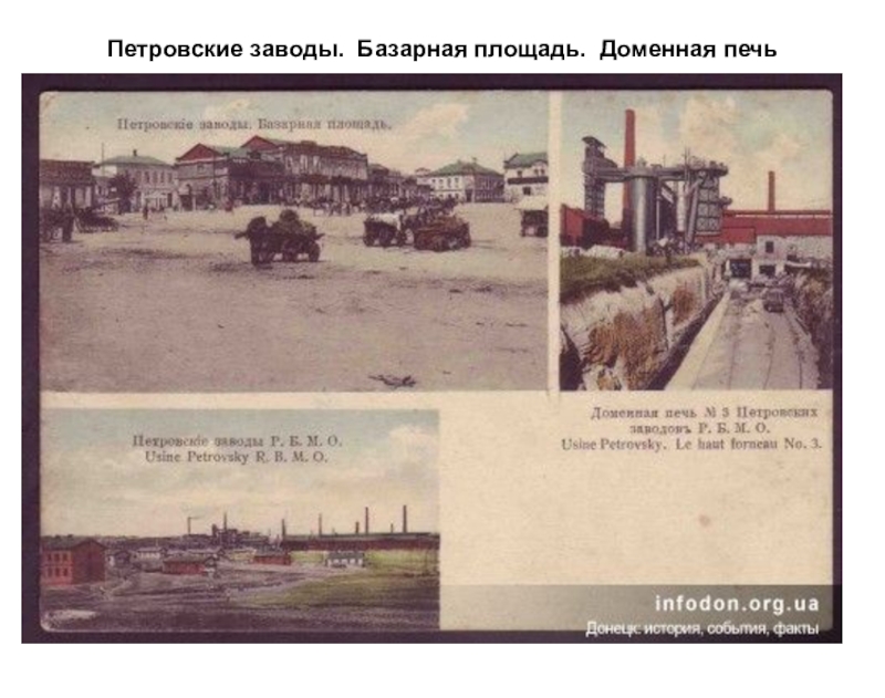 Слайд 17Петровские заводы. Базарная площадь. Доменная печь