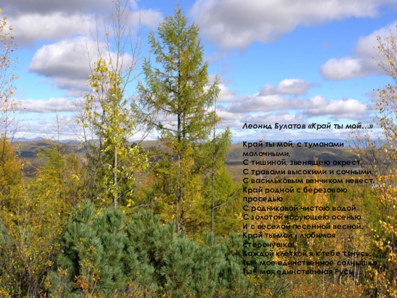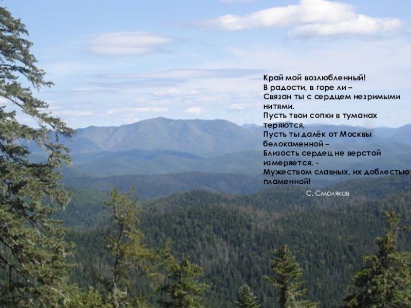 Слайд 2Край мой любимый – с туманными далями,