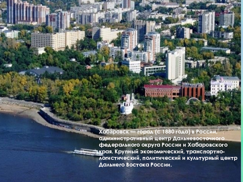 Слайд 15Хаба́ровск — город (с 1880 года) в России, административный центр Дальневосточного