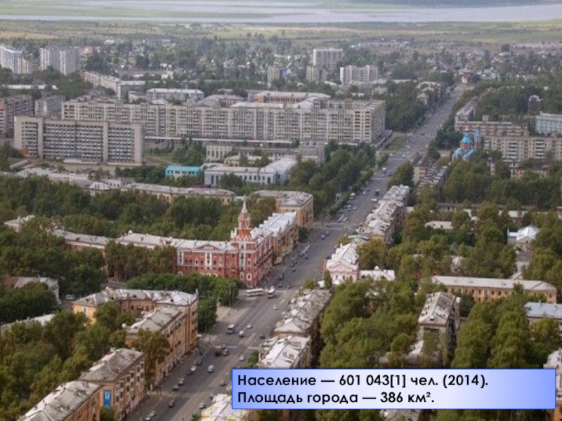 Слайд 16Население — 601 043[1] чел. (2014). Площадь города — 386 км².