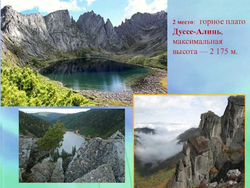 Слайд 332 место: горное плато Дуссе-Алинь, максимальная высота — 2 175 м.