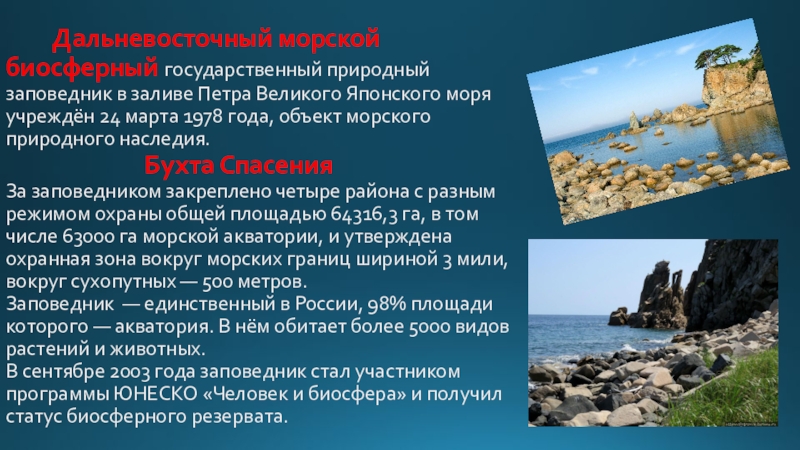 Слайд 32 Дальневосточный морской биосферный государственный природный