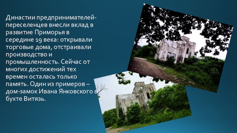 Слайд 28Династии предпринимателей-переселенцев внесли вклад в развитие Приморья в середине 19 века: