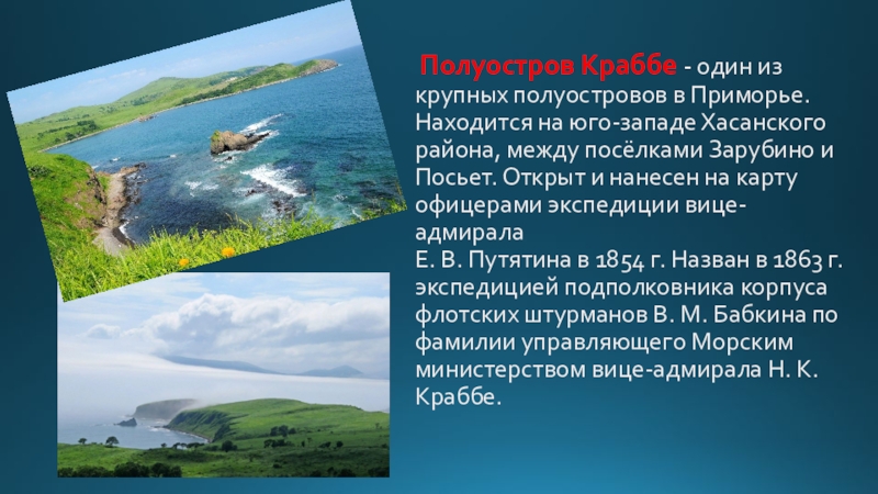 Слайд 35 Полуостров Краббе - один из крупных полуостровов в Приморье.