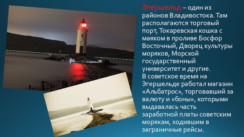 Слайд 25Эгершельд – один из районов Владивостока. Там располагаются торговый порт, Токаревская