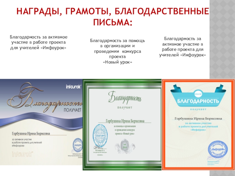Благодарность за активное участие в работе проекта для учителей «Инфоурок»