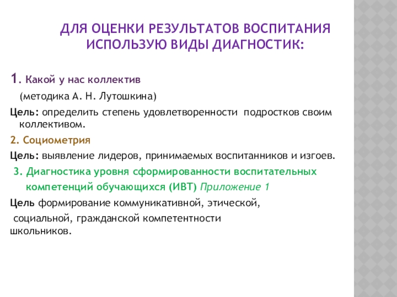 Составление ИВТ воспитанников, позволяющей своевременно диагностировать уровень развития воспитательных компетенций обучающихся