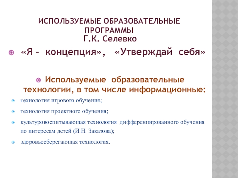 культуровоспитывающая технология дифференцированного обучения по интересам детей (И.Н. Закатова);