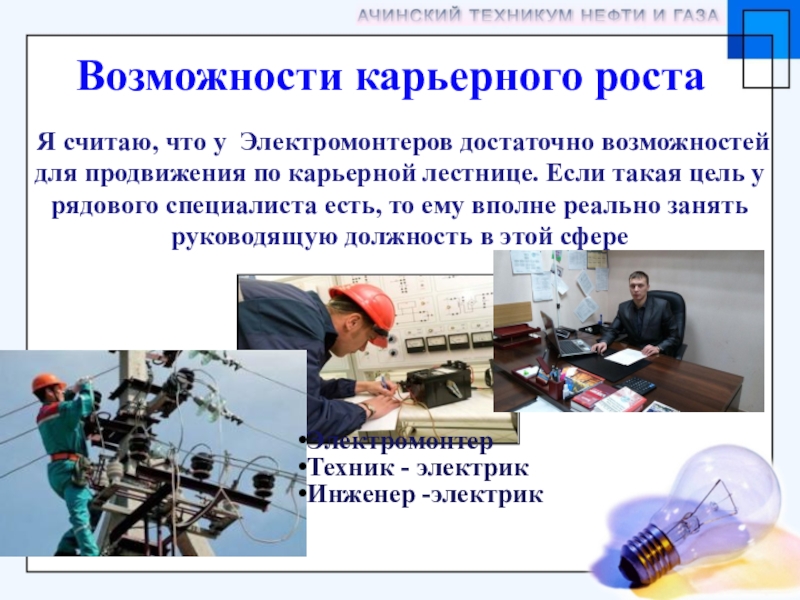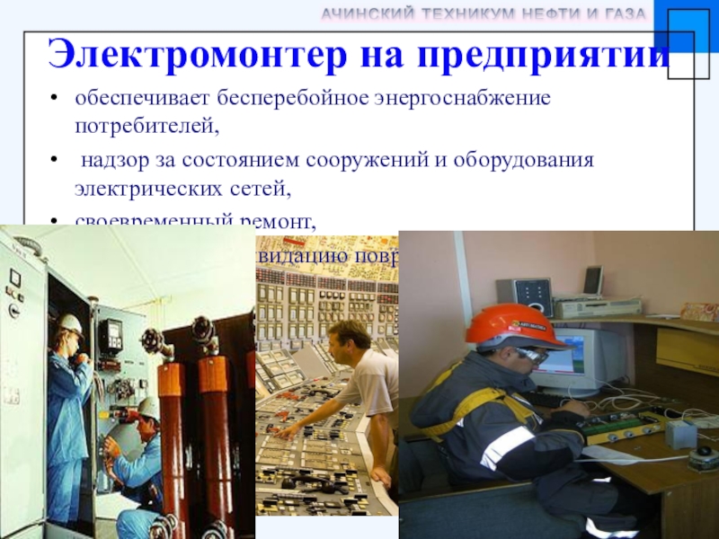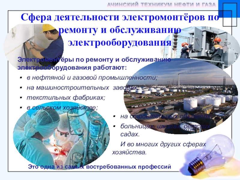 по профессии «Электромонтер по ремонту и обслуживанию электрооборудования»