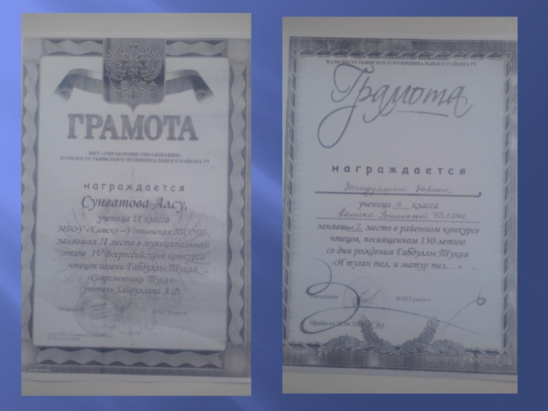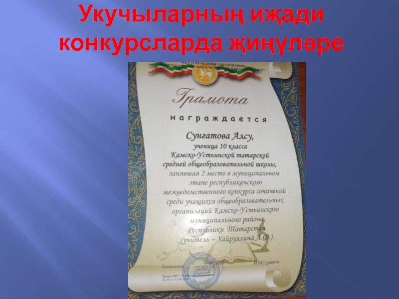 Слайд 15Укучыларның иҗади конкурсларда җиңүләре