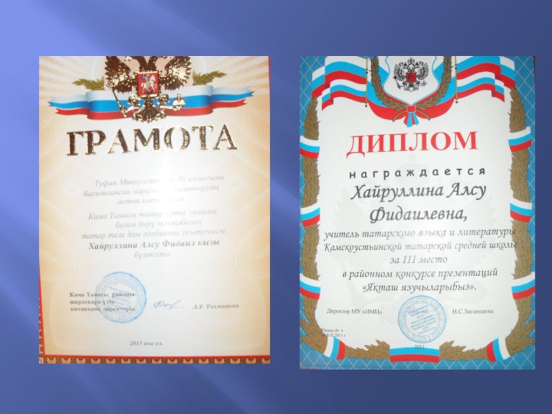 Слайд 1Хәйруллина Алсу Фидаил кызы. Татар теле һәм әдәбияты укытучысы.
