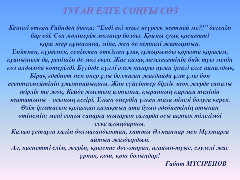 Ғ.Мүсірепов- шешен сөздің зергері