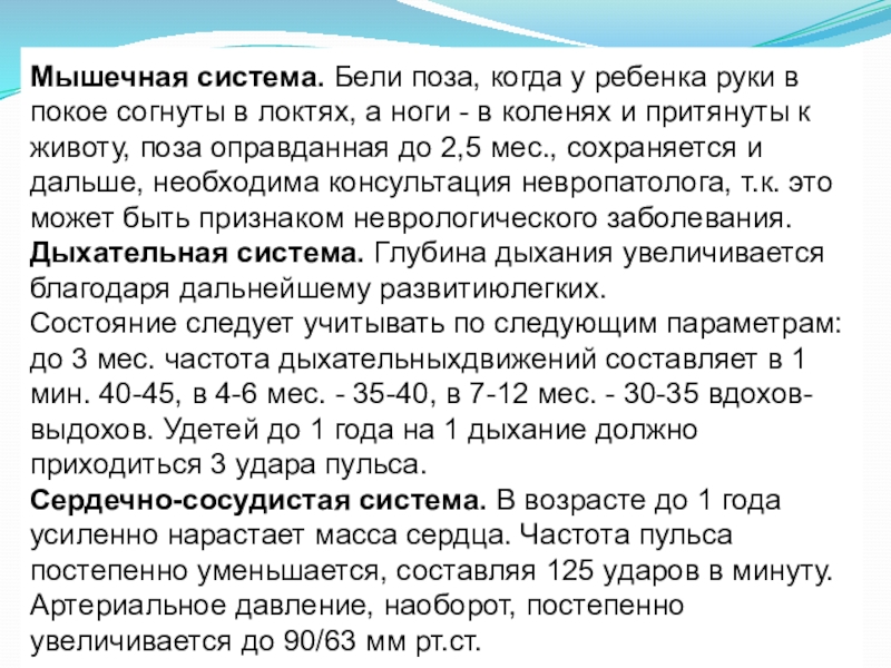 Слайд 5Мышечная система. Бели поза, когда у ребенка руки в покое согнуты