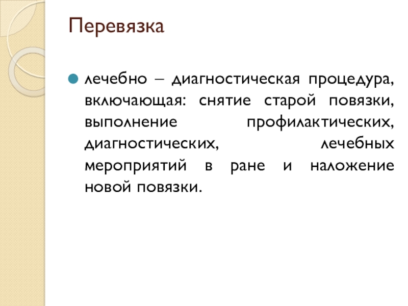 лечебно – диагностическая процедура, включающая: снятие старой повязки, выполнение профилактических,
