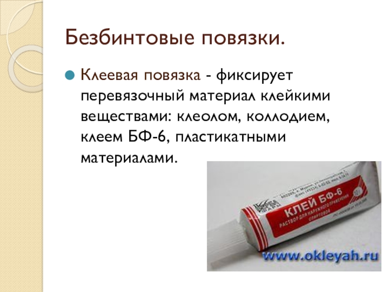 Клеевая повязка - фиксирует перевязочный материал клейкими веществами: клеолом, коллодием,
