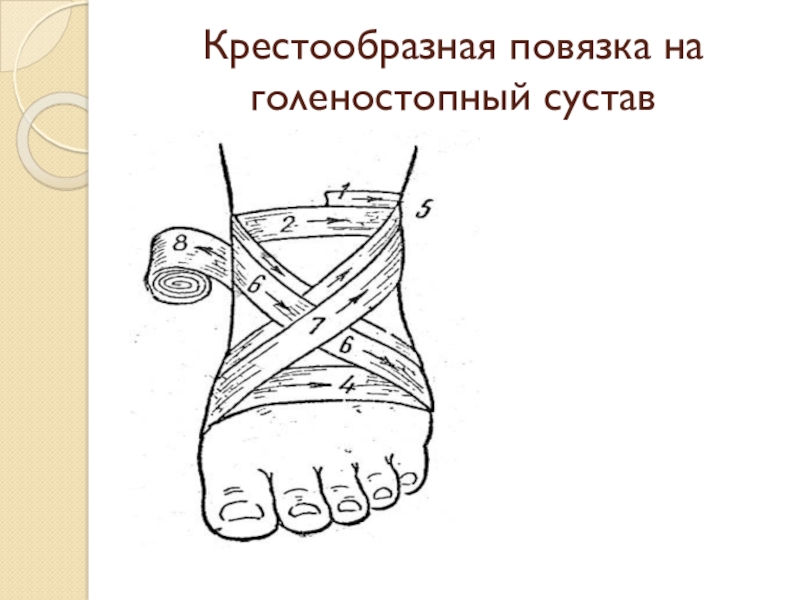 Слайд 28Крестообразная повязка на голеностопный сустав
