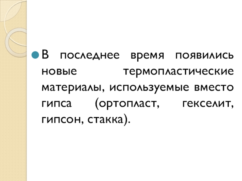 Слайд 34В последнее время появились новые термопластические материалы, используемые вместо гипса (ортопласт,