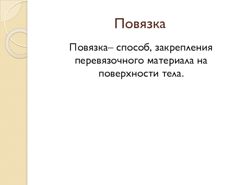 Повязка– способ, закрепления перевязочного материала на поверхности тела.