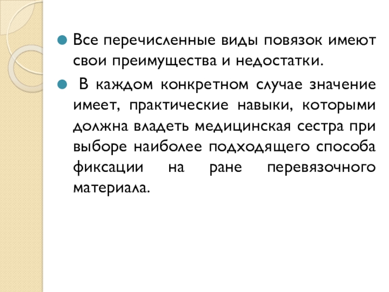 Слайд 35Все перечисленные виды повязок имеют свои преимущества и недостатки.