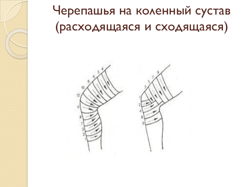 Слайд 27Черепашья на коленный сустав (расходящаяся и сходящаяся)