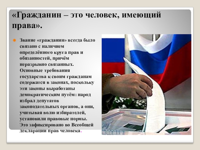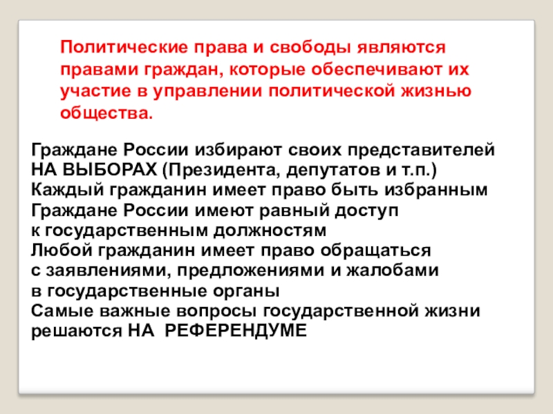 Граждане России избирают своих представителей НА ВЫБОРАХ (Президента, депутатов и т.п.)