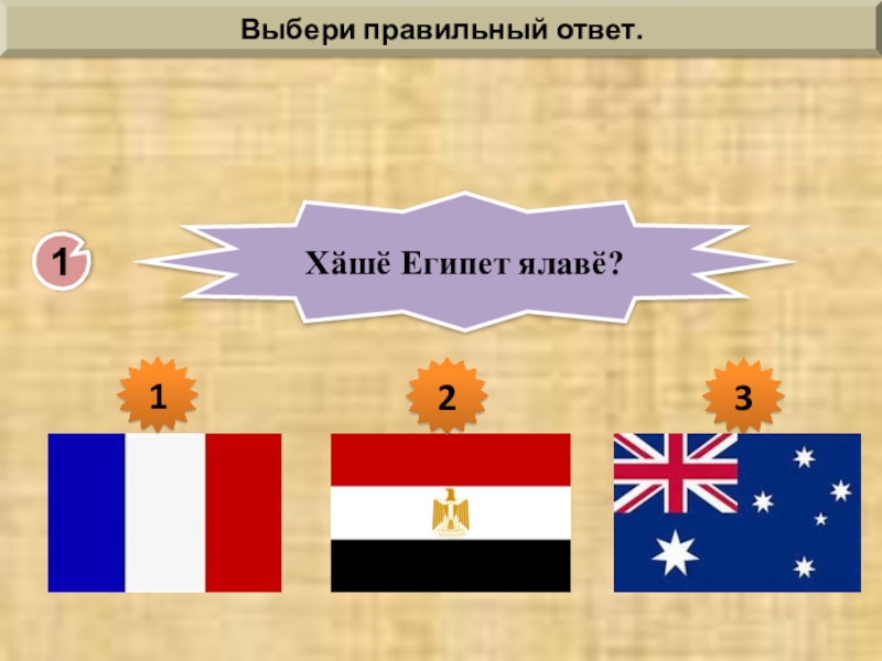 1Хӑшӗ Египет ялавӗ? Выбери правильный ответ.132