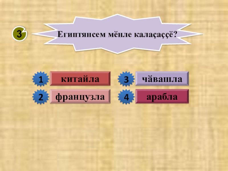 чӑвашла3араблаЕгиптянсем мӗнле калаçаççӗ?китайлафранцузла2134