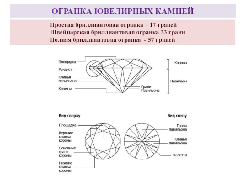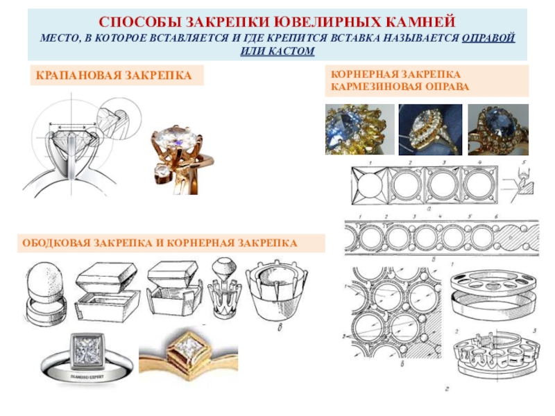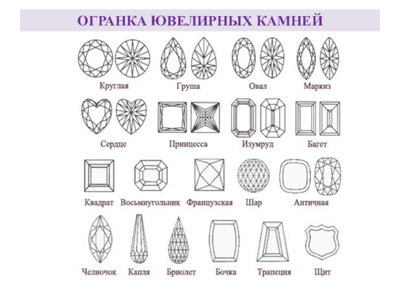 Виды вставок (ювелирные камни, формы их огранки, способы закрепления в изделии)