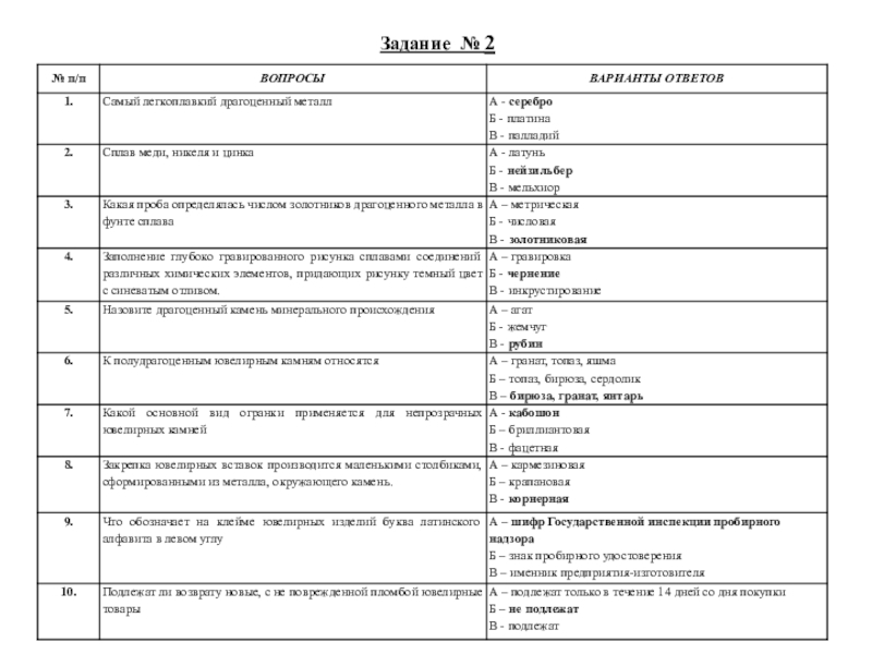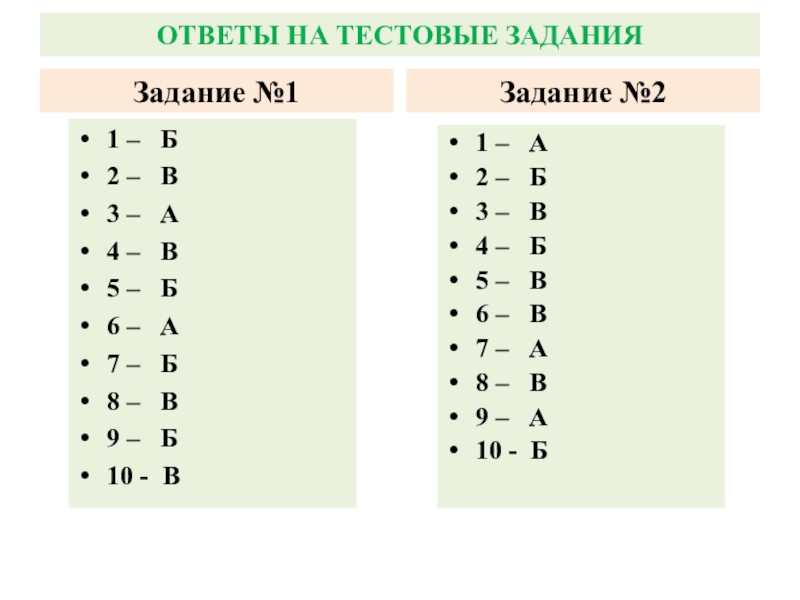 Слайд 73ОТВЕТЫ НА ТЕСТОВЫЕ ЗАДАНИЯ