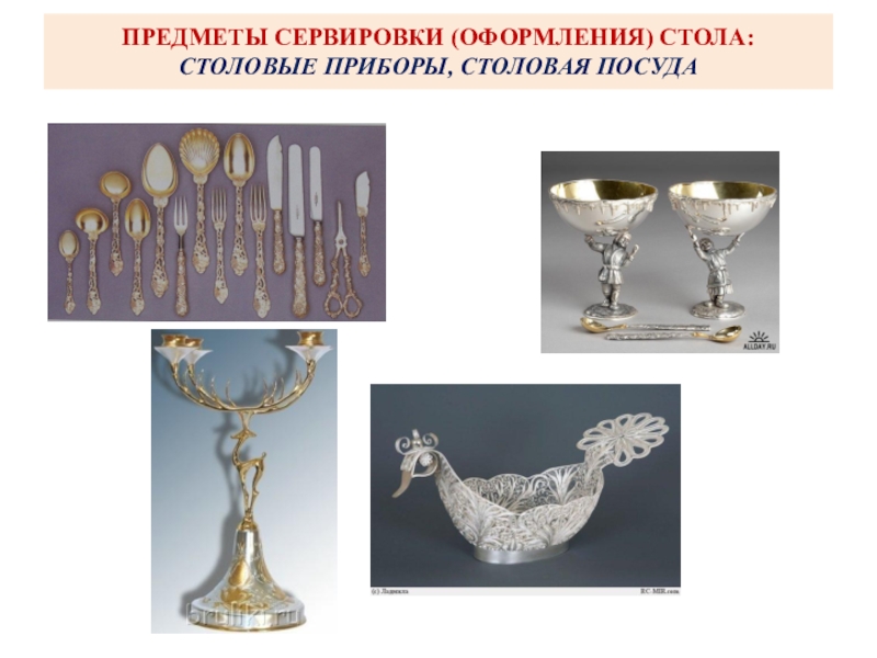 Слайд 58ПРЕДМЕТЫ СЕРВИРОВКИ (ОФОРМЛЕНИЯ) СТОЛА: