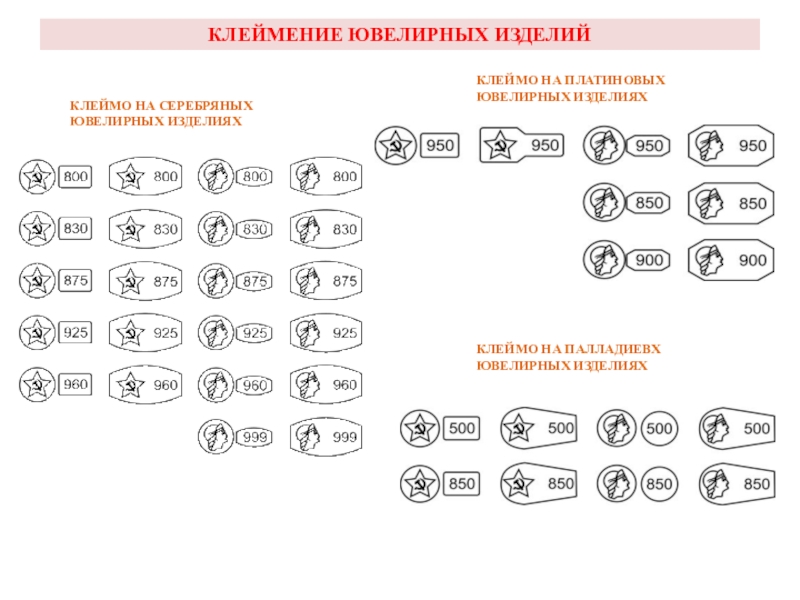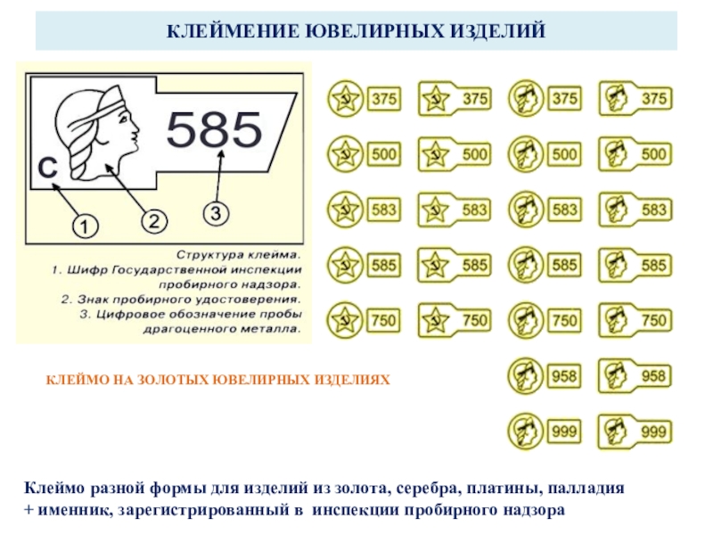 Слайд 64КЛЕЙМЕНИЕ ЮВЕЛИРНЫХ ИЗДЕЛИЙ