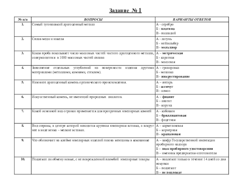 краткому конспекту «Классификация ювелирных товаров», записывают информацию в тетради. Знакомятся с ассортиментом ювелирных товаров, используя альбом «Ассортимент ювелирных товаров».