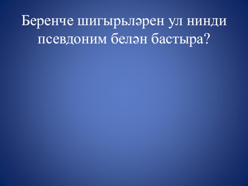 Слайд 5Беренче шигырьләрен ул нинди псевдоним белән бастыра?