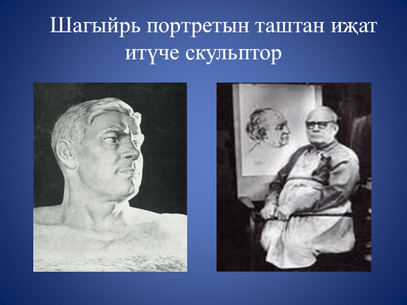 Слайд 19 Шагыйрь портретын таштан иҗат итүче скульптор