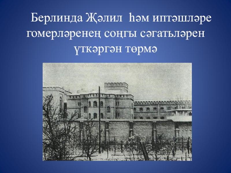 Слайд 16 Берлинда Җәлил һәм иптәшләре гомерләренең соңгы сәгатьләрен үткәргән төрмә