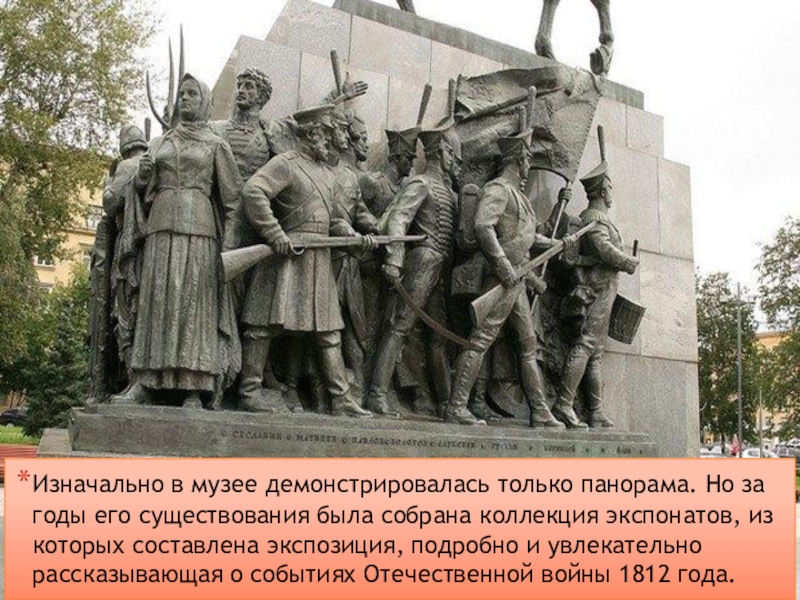 Слайд 13Изначально в музее демонстрировалась только панорама. Но за годы его существования