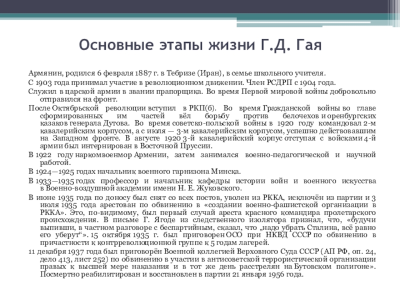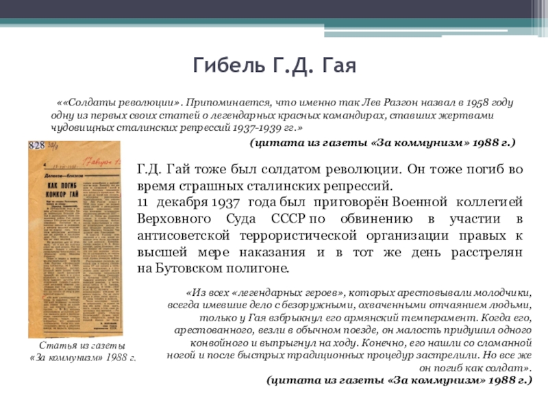 Г.Д. Гай тоже был солдатом революции. Он тоже погиб во время страшных сталинских репрессий.