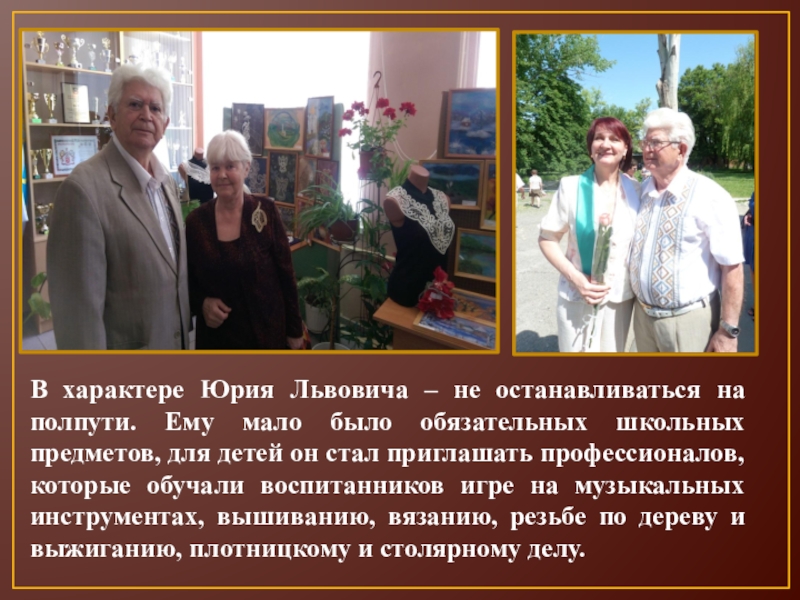 Слайд 6В характере Юрия Львовича – не останавливаться на полпути. Ему мало