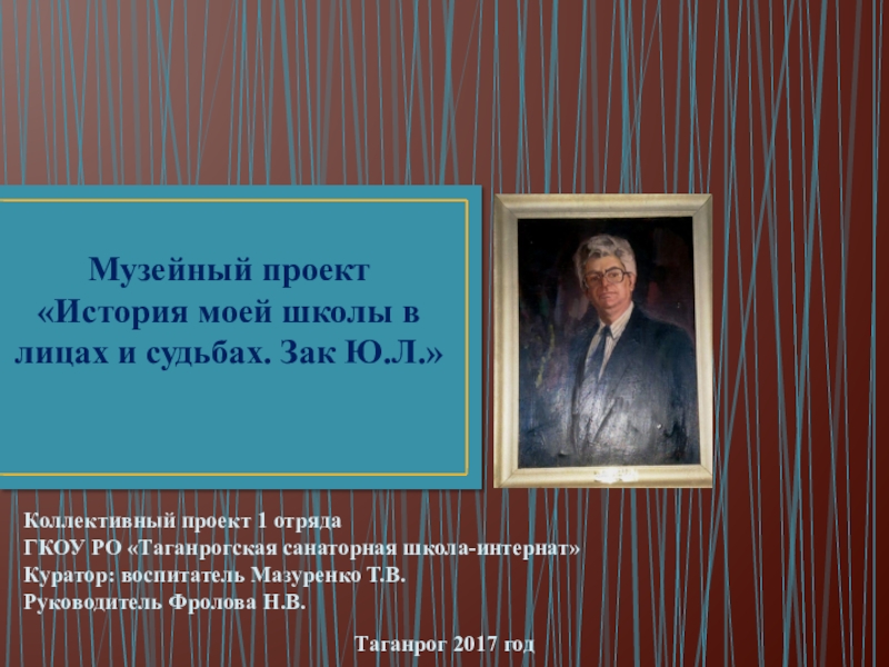 Слайд 1Музейный проект «История моей школы в лицах и судьбах. Зак Ю.Л.»