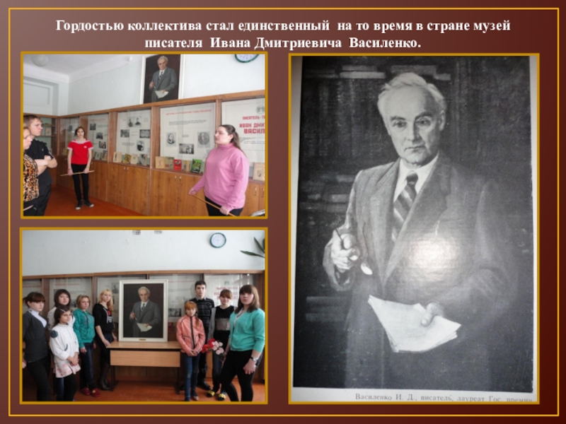 Слайд 9Гордостью коллектива стал единственный на то время в стране музей писателя
