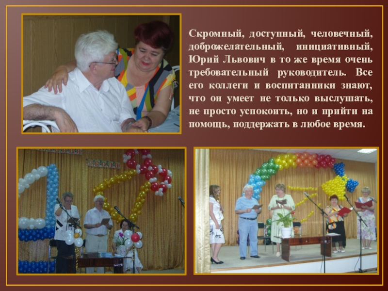 Слайд 11Скромный, доступный, человечный, доброжелательный, инициативный, Юрий Львович в то же время