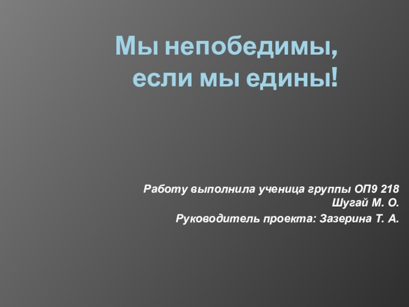 Руководитель проекта: Зазерина Т. А.